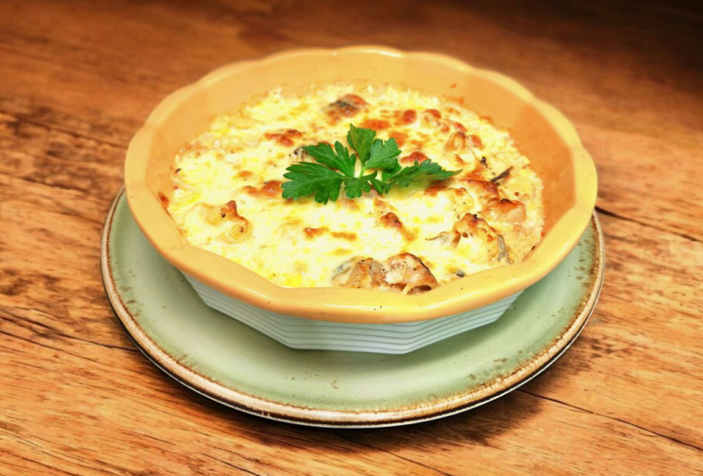 Сочная текстура, золотистая сырная корочка и нежный морской вкус — всё это создаёт идеальный баланс между домашним уютом и ресторанным наслаждением.