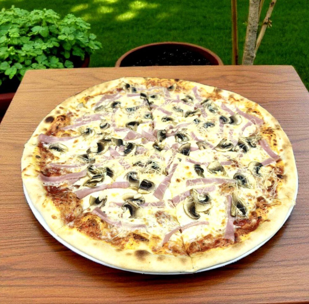 Пицца с ветчиной и грибами